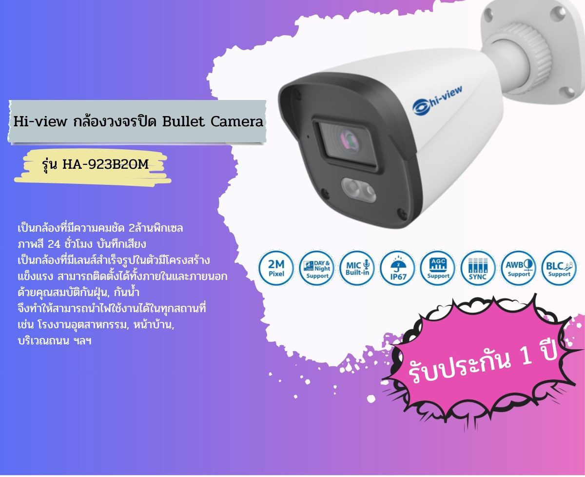 Hi-view กล้องวงจรปิด Bullet Camera รุ่น HA-923B2OM